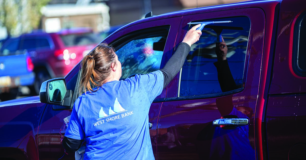 One West Shore Bank branch donated their time with their second community car wash. The Bank’s Scottville office hosted an entirely employee-run car wash with donations benefitting the Mason County Central Nature Center. Thirty-six vehicles participated in the fundraiser, earning $594 in donations. West Shore Bank matched the amount raised in the car wash, donating a $1,188 total to the MCC Nature Center.